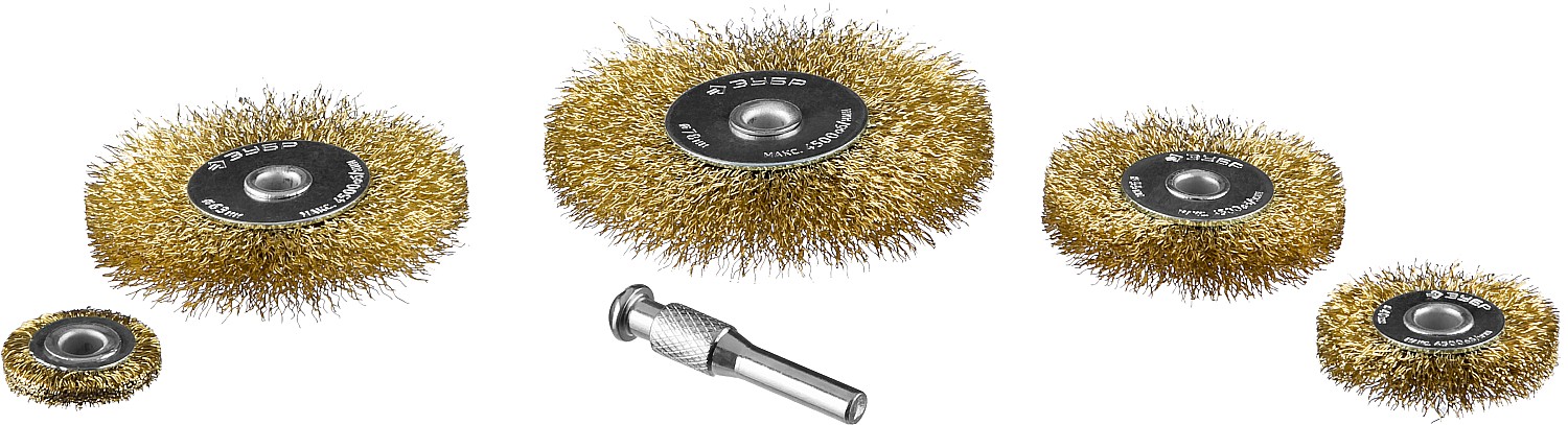 ЗУБР 5 шт., 25/40/55/63/78 мм, витая латунированная стальная проволока, Набор щеток крацовок дисковых, Профессионал (3521-H5)